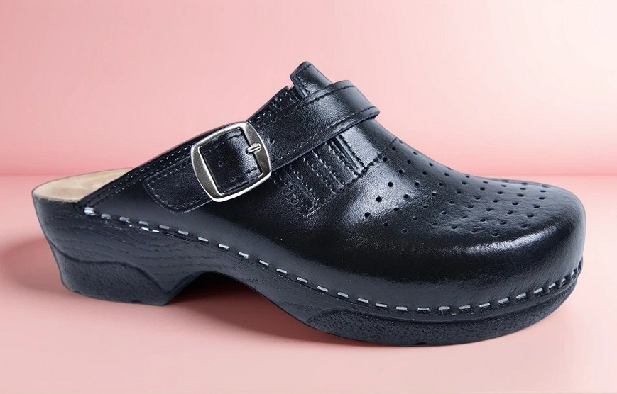 Ova ženska klompa izrađena je od visokokvalitetne prirodne kože, koja pruža dugotrajnost, eleganciju i pouzdanost u svakodnevnoj upotrebi.