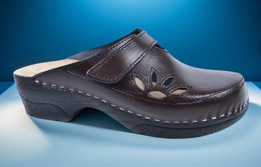Mekana tabanica od velur-kože daje prijatan osećaj stopalima, dok anatomski oblikovan đon obezbeđuje prirodnu potporu, čineći klompu udobnom čak i nakon dužeg nošenja.