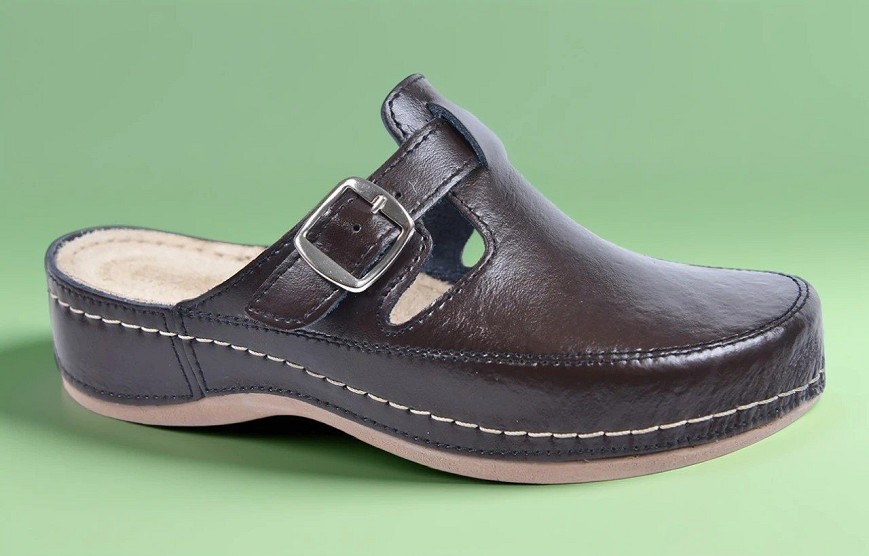 Izrađena od visokokvalitetne prirodne kože, ova ženska klompa kombinuje eleganciju, udobnost i praktičnost u jednoj obući. Materijal omogućava da stopalo diše, dok istovremeno obezbeđuje dugotrajnost i prijatan osećaj tokom nošenja.