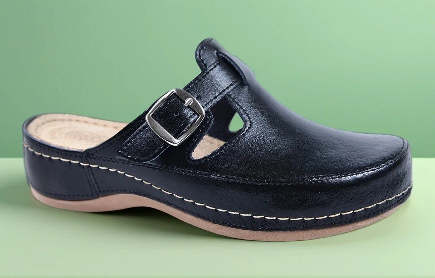 Izrađena od visokokvalitetne prirodne kože, ova ženska klompa kombinuje eleganciju, udobnost i praktičnost u jednoj obući. Materijal omogućava da stopalo diše, dok istovremeno obezbeđuje dugotrajnost i prijatan osećaj tokom nošenja.