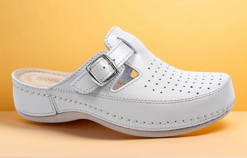 Izrađena od visokokvalitetne prirodne kože, ova ženska klompa kombinuje eleganciju, udobnost i praktičnost u jednoj obući. Materijal omogućava da stopalo diše, dok istovremeno obezbeđuje dugotrajnost i prijatan osećaj tokom nošenja.