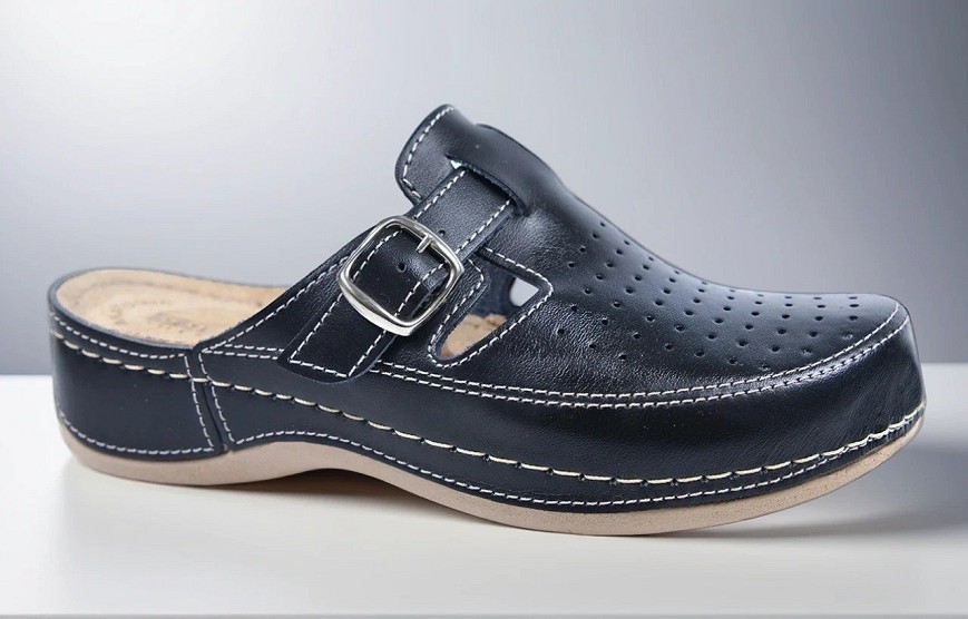 Izrađena od visokokvalitetne prirodne kože, ova ženska klompa kombinuje eleganciju, udobnost i praktičnost u jednoj obući. Materijal omogućava da stopalo diše, dok istovremeno obezbeđuje dugotrajnost i prijatan osećaj tokom nošenja.