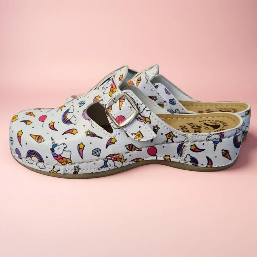 Peta visine 4 cm pruža stabilan oslonac i nežno naglašava ženstveni izgled, čineći ove ženske klompe praktičnim, udobnim i elegantnim izborom za svaki dan.