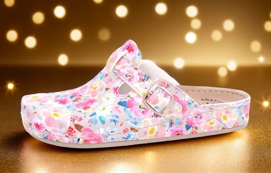 Ženska klompa od veštačke kože – sa 2 cm ravnim đonom