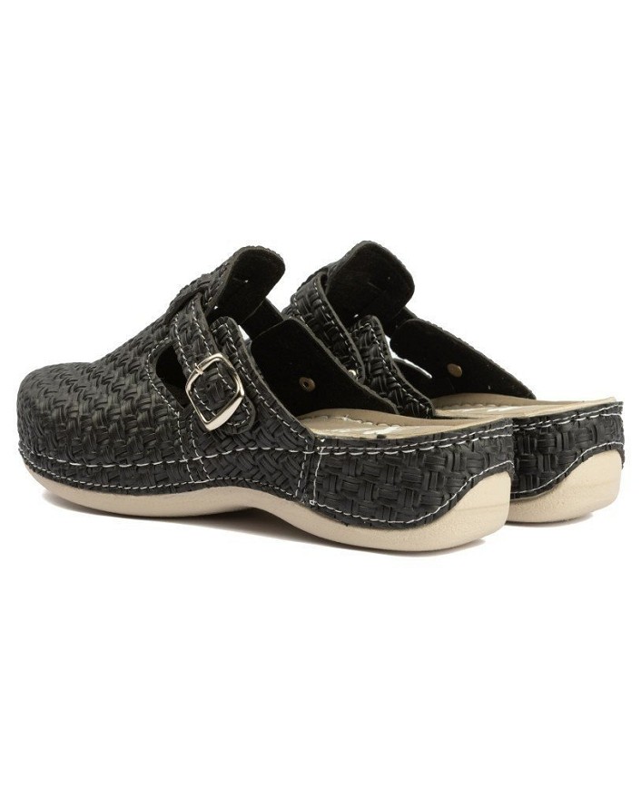 Veoma izdržljiva, udobna i mekana ženska klompa izrađena od goveđe kože. Gazište klompe ispunjeno MASSAGE GEL-om pruža sjajan osećaj masaže na stopalima, delujući opuštajuće na celo telo. Idealne su za osobe koje zbog posla ili drugih obaveza dugo stoje u toku dana.