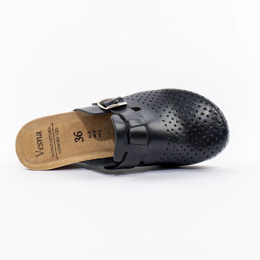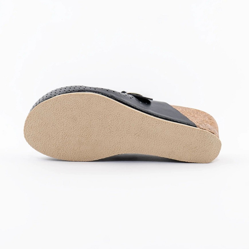 Odgovaraju svakom obliku noge. Klompe na visokoj potpetici izrađene su od prave goveđe kože sa đonom od 100% prirodne plute, osiguravajući dugotrajnost i kvalitet. Anatomski oblikovan đon sa antiklizačima pružiće sigurnu potporu pri hodu u obavljanju svakodnevnih kućnih poslova.