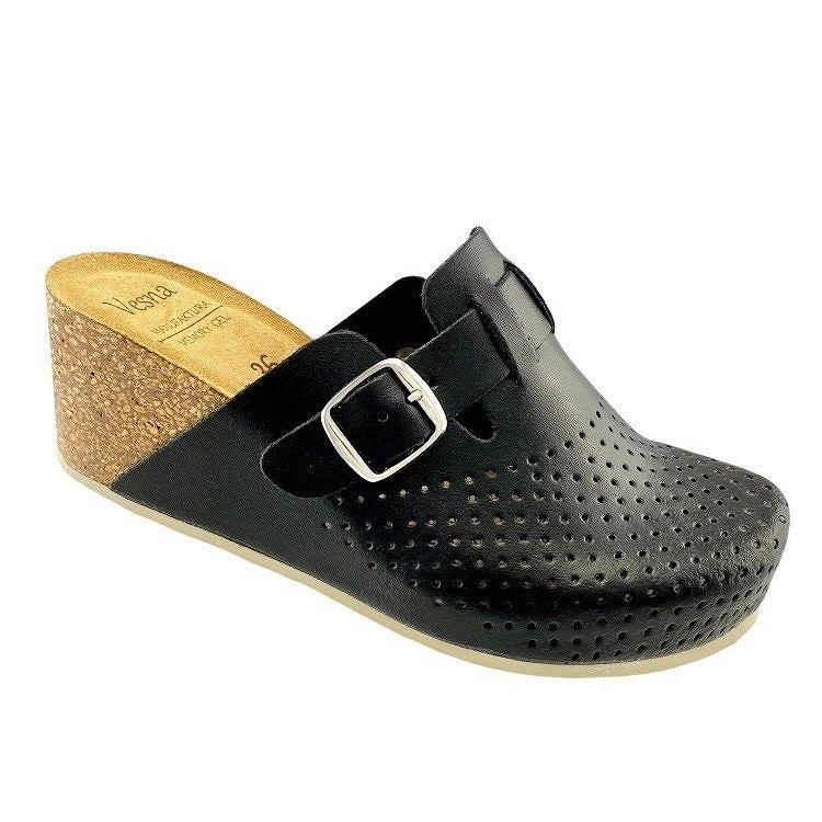 Odgovaraju svakom obliku noge. Klompe na visokoj potpetici izrađene su od prave goveđe kože sa đonom od 100% prirodne plute, osiguravajući dugotrajnost i kvalitet. Anatomski oblikovan đon sa antiklizačima pružiće sigurnu potporu pri hodu u obavljanju svakodnevnih kućnih poslova.