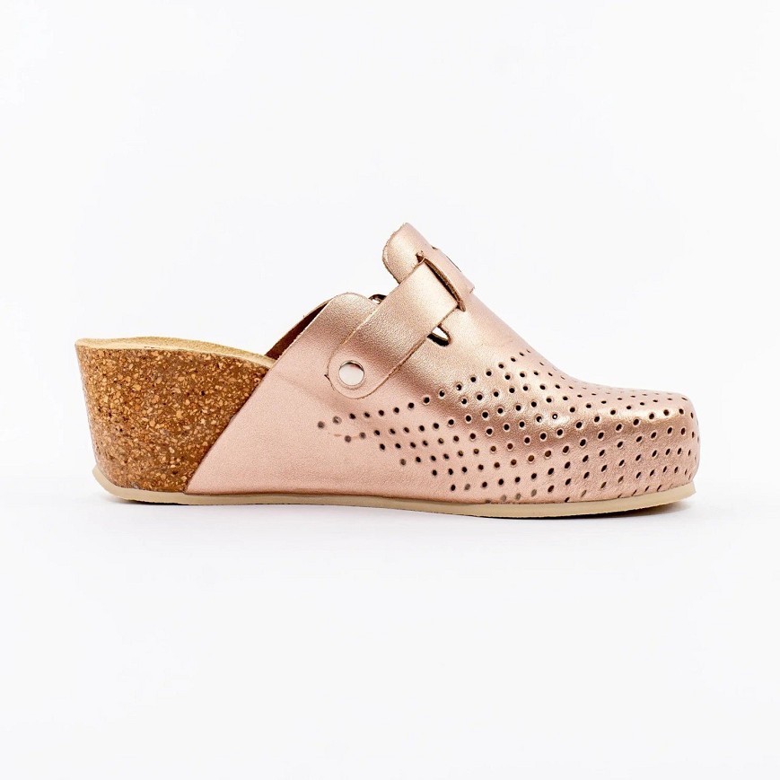 Odgovaraju svakom obliku noge. Klompe na visokoj potpetici izrađene su od prave goveđe kože sa đonom od 100% prirodne plute, osiguravajući dugotrajnost i kvalitet. Anatomski oblikovan đon sa antiklizačima pružiće sigurnu potporu pri hodu u obavljanju svakodnevnih kućnih poslova.