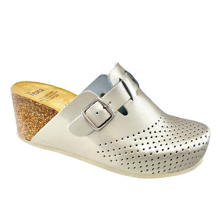 Odgovaraju svakom obliku noge. Klompe na visokoj potpetici izrađene su od prave goveđe kože sa đonom od 100% prirodne plute, osiguravajući dugotrajnost i kvalitet. Anatomski oblikovan đon sa antiklizačima pružiće sigurnu potporu pri hodu u obavljanju svakodnevnih kućnih poslova.