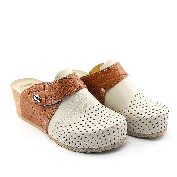 Odgovaraju svakom obliku noge. Klompe na visokoj potpetici izrađene su od prave goveđe kože sa đonom od 100% prirodne plute, osiguravajući dugotrajnost i kvalitet. Anatomski oblikovan đon sa antiklizačima pružiće sigurnu potporu pri hodu u obavljanju svakodnevnih kućnih poslova.