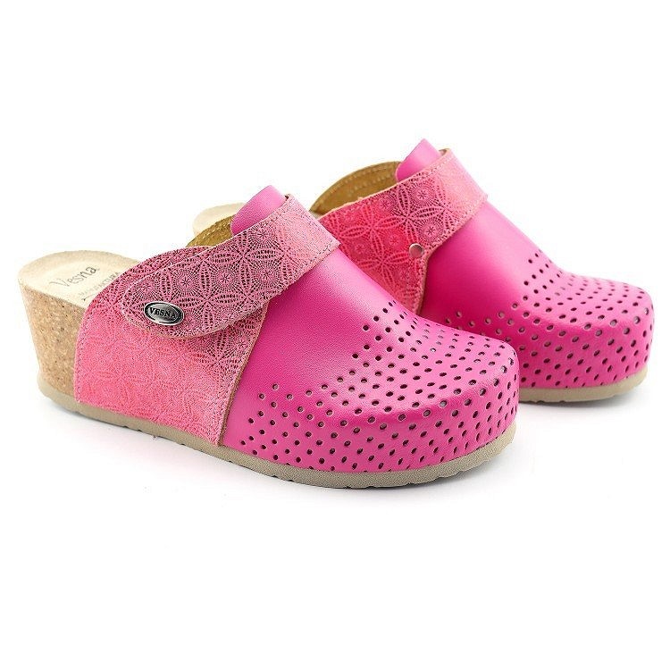Odgovaraju svakom obliku noge. Klompe na visokoj potpetici izrađene su od prave goveđe kože sa đonom od 100% prirodne plute, osiguravajući dugotrajnost i kvalitet. Anatomski oblikovan đon sa antiklizačima pružiće sigurnu potporu pri hodu u obavljanju svakodnevnih kućnih poslova.