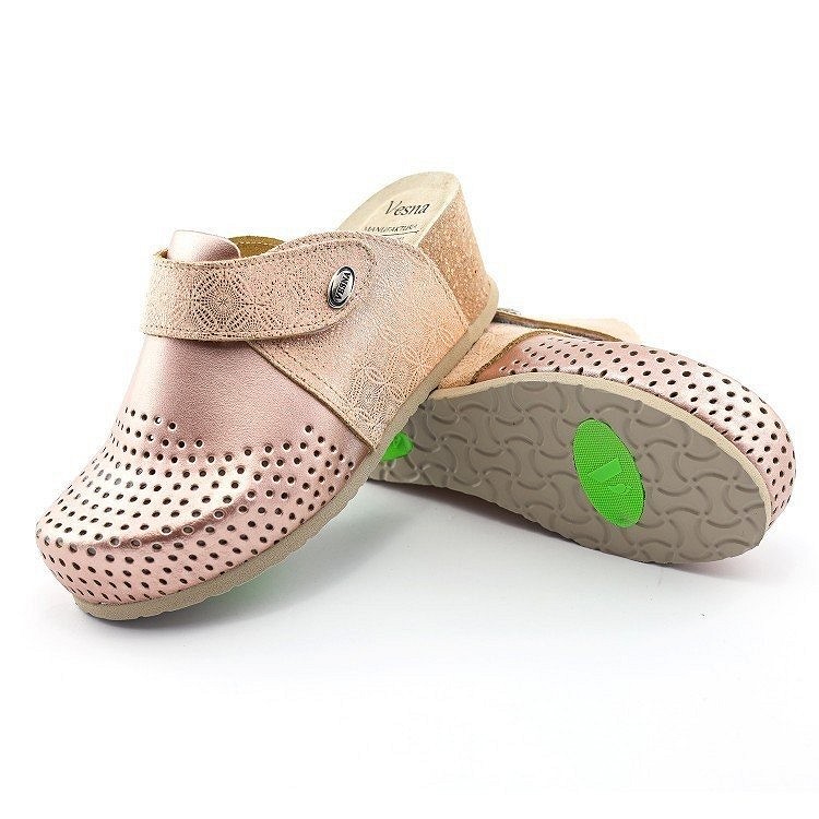 Odgovaraju svakom obliku noge. Klompe na visokoj potpetici izrađene su od prave goveđe kože sa đonom od 100% prirodne plute, osiguravajući dugotrajnost i kvalitet. Anatomski oblikovan đon sa antiklizačima pružiće sigurnu potporu pri hodu u obavljanju svakodnevnih kućnih poslova.