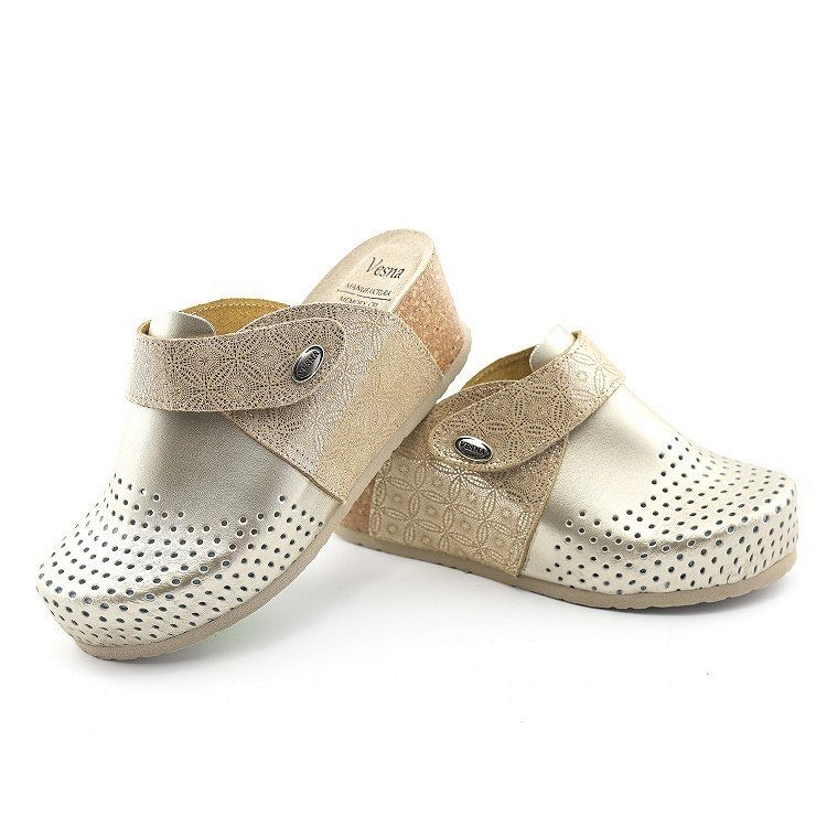 Odgovaraju svakom obliku noge. Klompe na visokoj potpetici izrađene su od prave goveđe kože sa đonom od 100% prirodne plute, osiguravajući dugotrajnost i kvalitet. Anatomski oblikovan đon sa antiklizačima pružiće sigurnu potporu pri hodu u obavljanju svakodnevnih kućnih poslova.