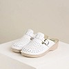 Ženska klompa izrađena od najfinije prirodne kože, sa kožnom tabanicom koja sadrži 8 mm masažnog gela, pruža izuzetnu udobnost i rasterećenje pri svakom koraku. Masažni gel apsorbuje udarce, smanjuje pritisak na pete i idealan je izbor za osobe koje imaju problem petnog trna, kao i za sve koji provode mnogo vremena stojeći ili hodajući.