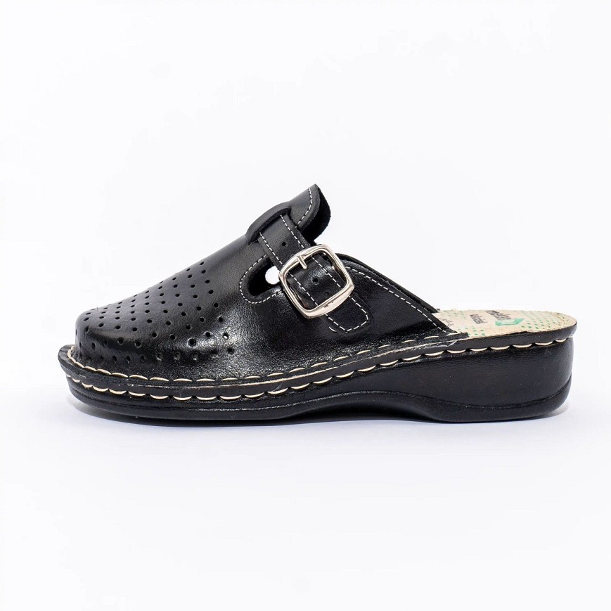 Ženska klompa izrađena od najfinije prirodne kože, sa kožnom tabanicom koja sadrži 8 mm masažnog gela, pruža izuzetnu udobnost i rasterećenje pri svakom koraku. Masažni gel apsorbuje udarce, smanjuje pritisak na pete i idealan je izbor za osobe koje imaju problem petnog trna, kao i za sve koji provode mnogo vremena stojeći ili hodajući.