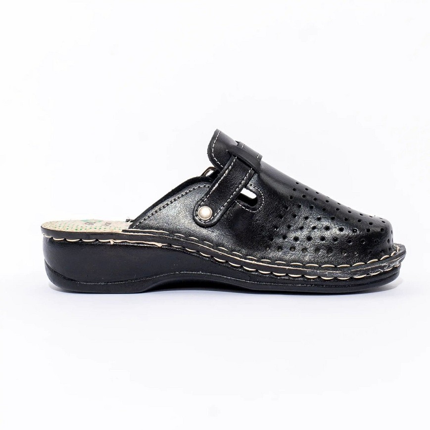 Ženska klompa izrađena od najfinije prirodne kože, sa kožnom tabanicom koja sadrži 8 mm masažnog gela, pruža izuzetnu udobnost i rasterećenje pri svakom koraku. Masažni gel apsorbuje udarce, smanjuje pritisak na pete i idealan je izbor za osobe koje imaju problem petnog trna, kao i za sve koji provode mnogo vremena stojeći ili hodajući.