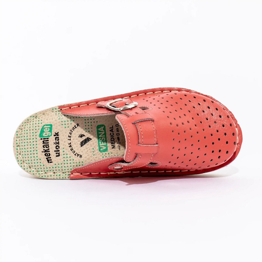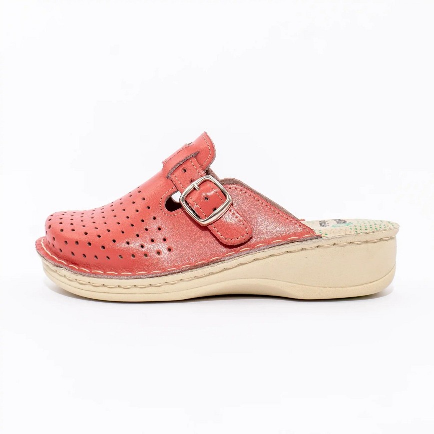 Ženska klompa izrađena od najfinije prirodne kože, sa kožnom tabanicom koja sadrži 8 mm masažnog gela, pruža izuzetnu udobnost i rasterećenje pri svakom koraku. Masažni gel apsorbuje udarce, smanjuje pritisak na pete i idealan je izbor za osobe koje imaju problem petnog trna, kao i za sve koji provode mnogo vremena stojeći ili hodajući.