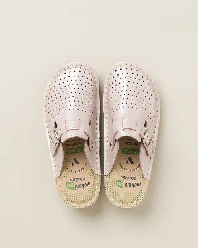 Ženska klompa izrađena od najfinije prirodne kože, sa kožnom tabanicom koja sadrži 8 mm masažnog gela, pruža izuzetnu udobnost i rasterećenje pri svakom koraku. Masažni gel apsorbuje udarce, smanjuje pritisak na pete i idealan je izbor za osobe koje imaju problem petnog trna, kao i za sve koji provode mnogo vremena stojeći ili hodajući.