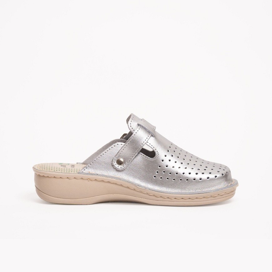 Ženska klompa izrađena od najfinije prirodne kože, sa kožnom tabanicom koja sadrži 8 mm masažnog gela, pruža izuzetnu udobnost i rasterećenje pri svakom koraku. Masažni gel apsorbuje udarce, smanjuje pritisak na pete i idealan je izbor za osobe koje imaju problem petnog trna, kao i za sve koji provode mnogo vremena stojeći ili hodajući.