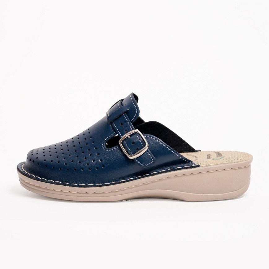 Ženska klompa izrađena od najfinije prirodne kože, sa kožnom tabanicom koja sadrži 8 mm masažnog gela, pruža izuzetnu udobnost i rasterećenje pri svakom koraku. Masažni gel apsorbuje udarce, smanjuje pritisak na pete i idealan je izbor za osobe koje imaju problem petnog trna, kao i za sve koji provode mnogo vremena stojeći ili hodajući.