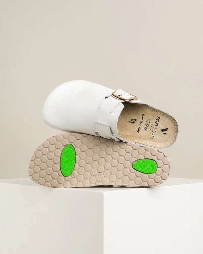 Kožne klompe – idealan izbor za žene koje žele udobnost, sigurnost i lakoću pokreta tokom celog dana. Zahvaljujući specijalnom gel ulošku, ovaj model obezbeđuje izuzetnu mekoću, prijatnu amortizaciju i rasterećenje stopala pri svakom koraku.