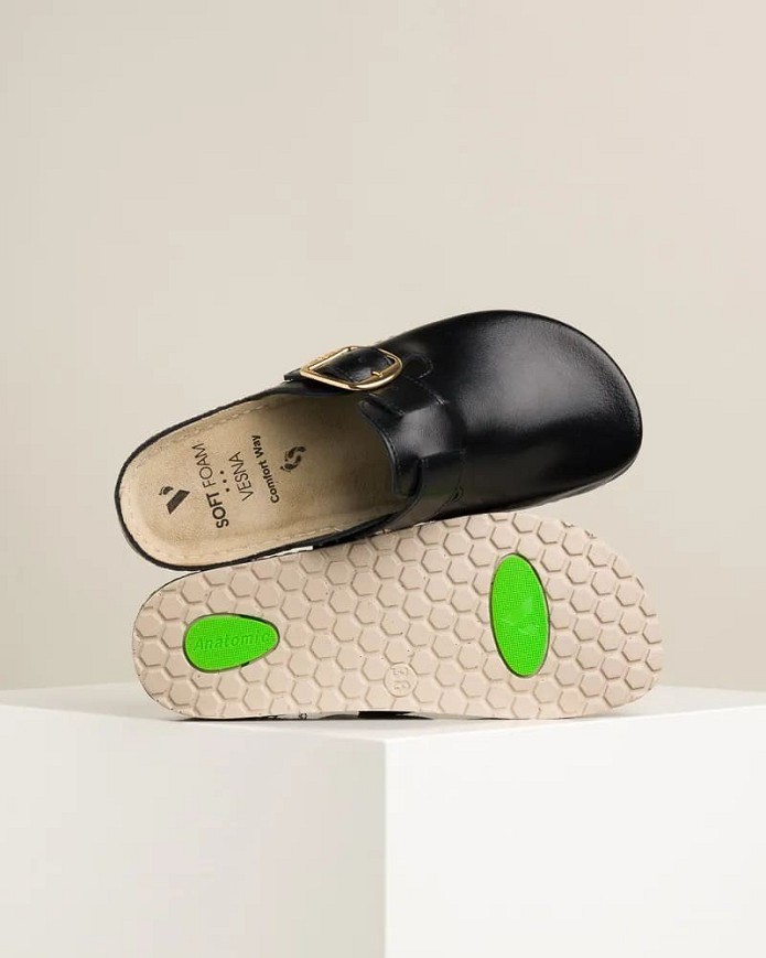 Kožne klompe – idealan izbor za žene koje žele udobnost, sigurnost i lakoću pokreta tokom celog dana. Zahvaljujući specijalnom gel ulošku, ovaj model obezbeđuje izuzetnu mekoću, prijatnu amortizaciju i rasterećenje stopala pri svakom koraku.