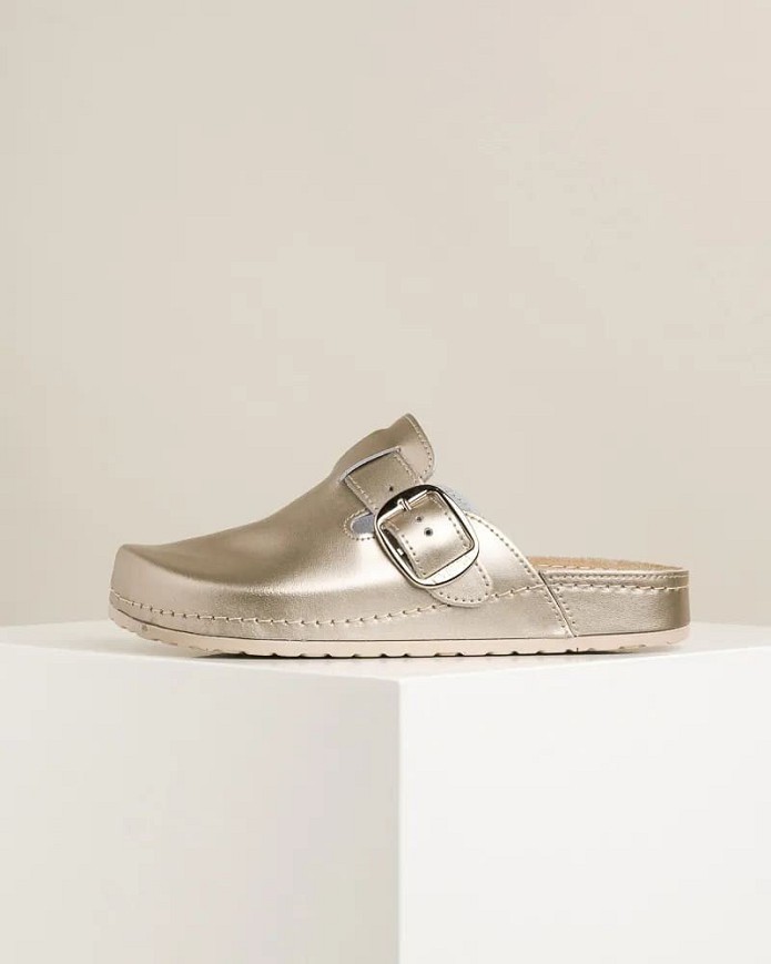 Kožne klompe – idealan izbor za žene koje žele udobnost, sigurnost i lakoću pokreta tokom celog dana. Zahvaljujući specijalnom gel ulošku, ovaj model obezbeđuje izuzetnu mekoću, prijatnu amortizaciju i rasterećenje stopala pri svakom koraku.